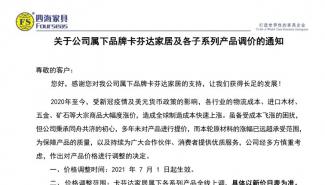 關于公司屬下品牌卡芬達家居及各子系列產品調價的通知
